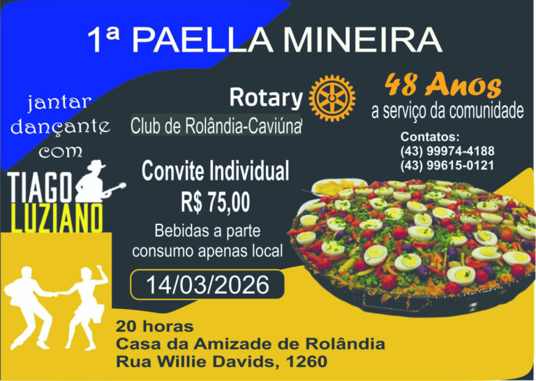 Rotary Club de Rolândia-Caviúna celebra seus 48 anos com a 1ª Paella Mineira Beneficente No próximo dia 14 de março, o Rotary Club de Rolândia-Caviúna