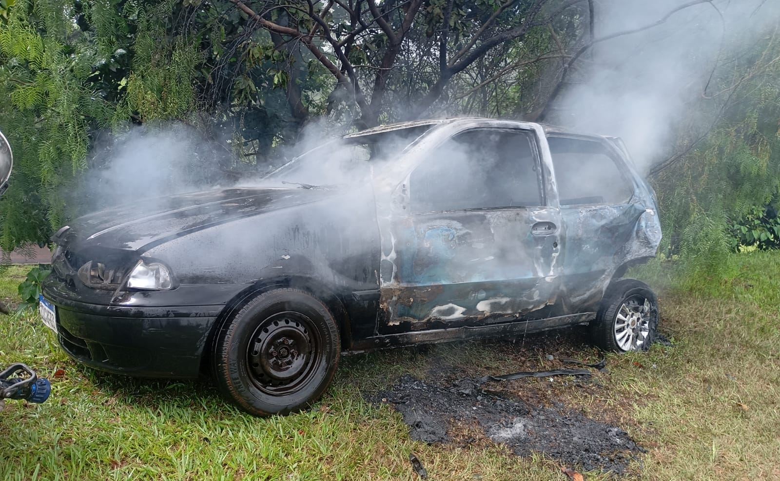 Bombeiros foram chamados para atender uma ocorrência em que um carro pagava fogo e em que havia vítima com queimadura