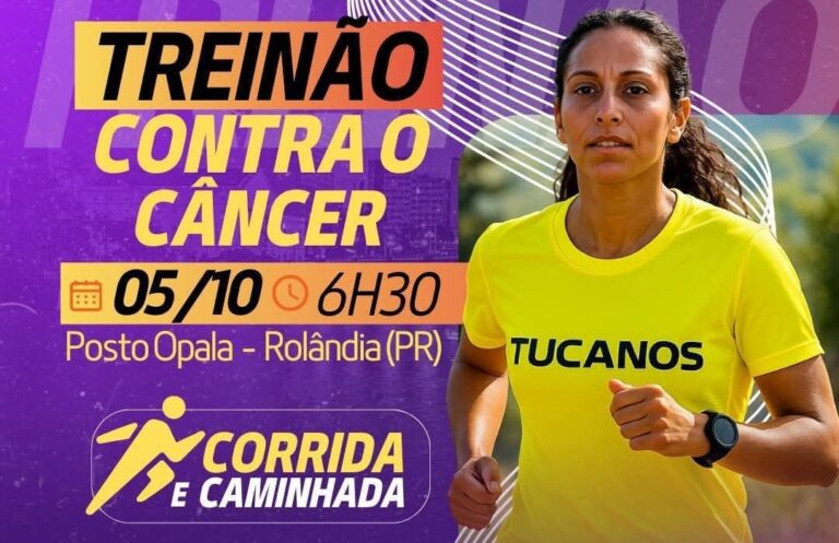 Corrida-caminhada tem concentração e saída do Posto Opala 29 Neste domingo (5), Rolândia promove um ‘Treinão Contra o Câncer’, uma caminhada e corrida que carrega