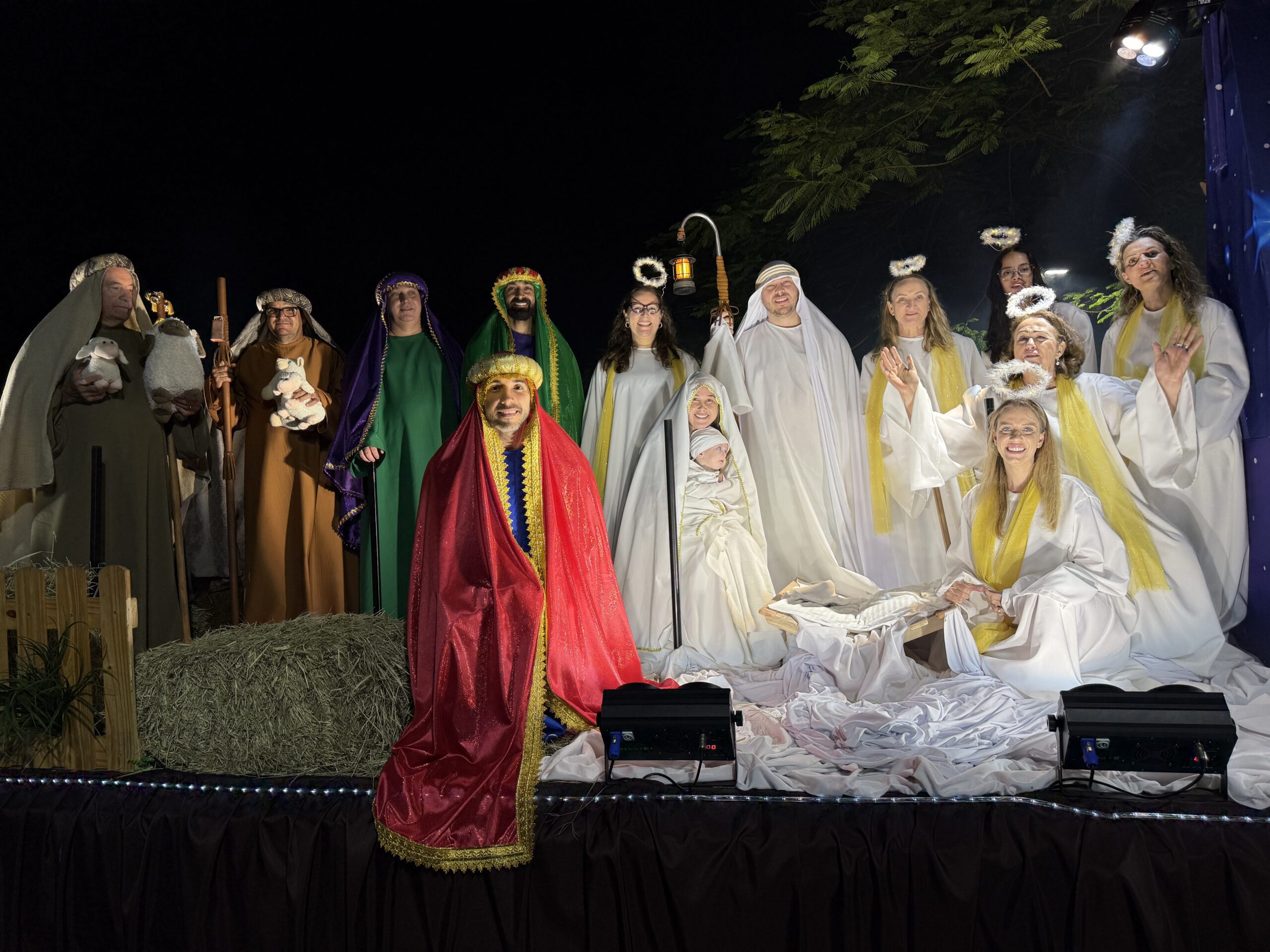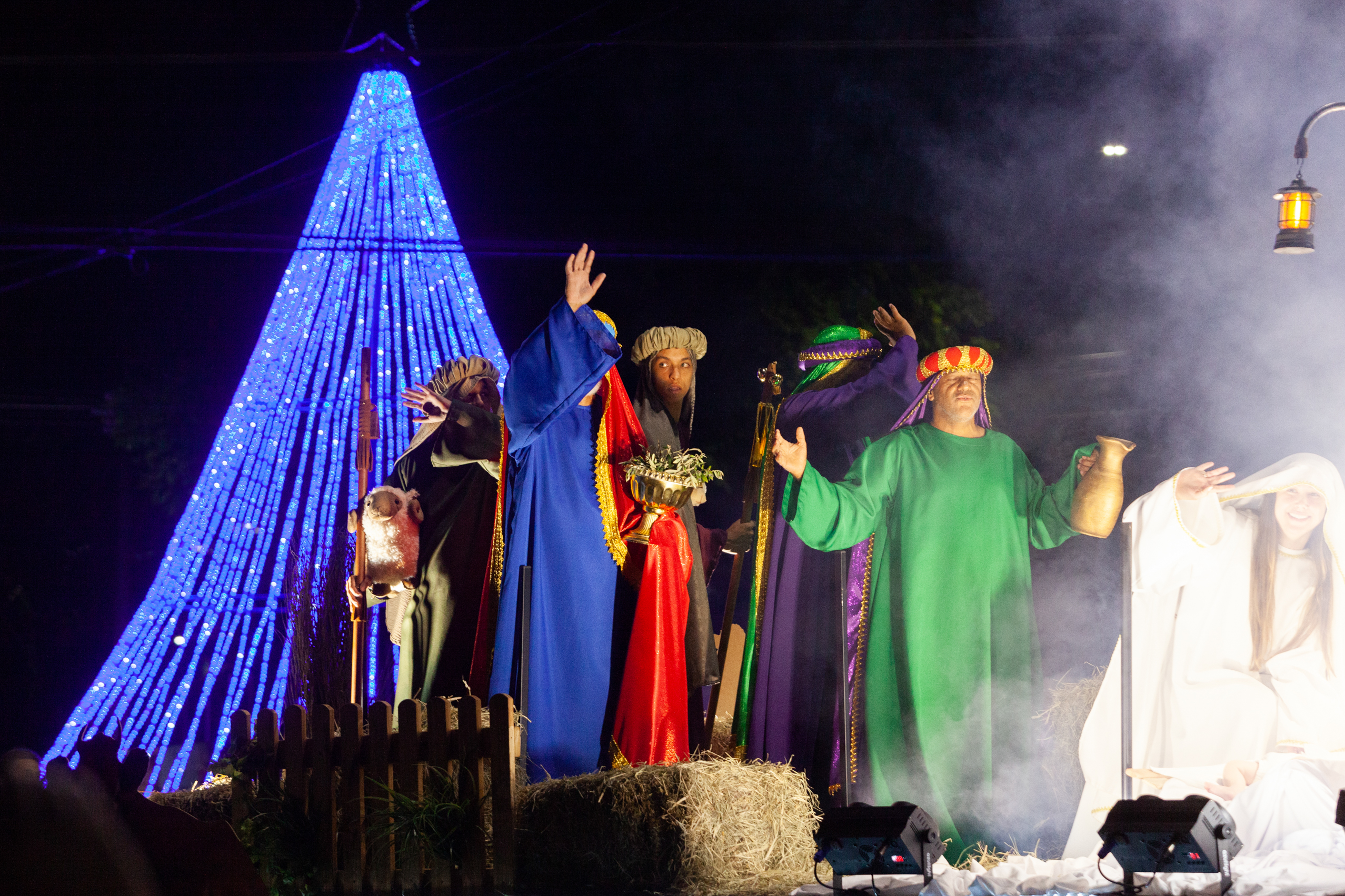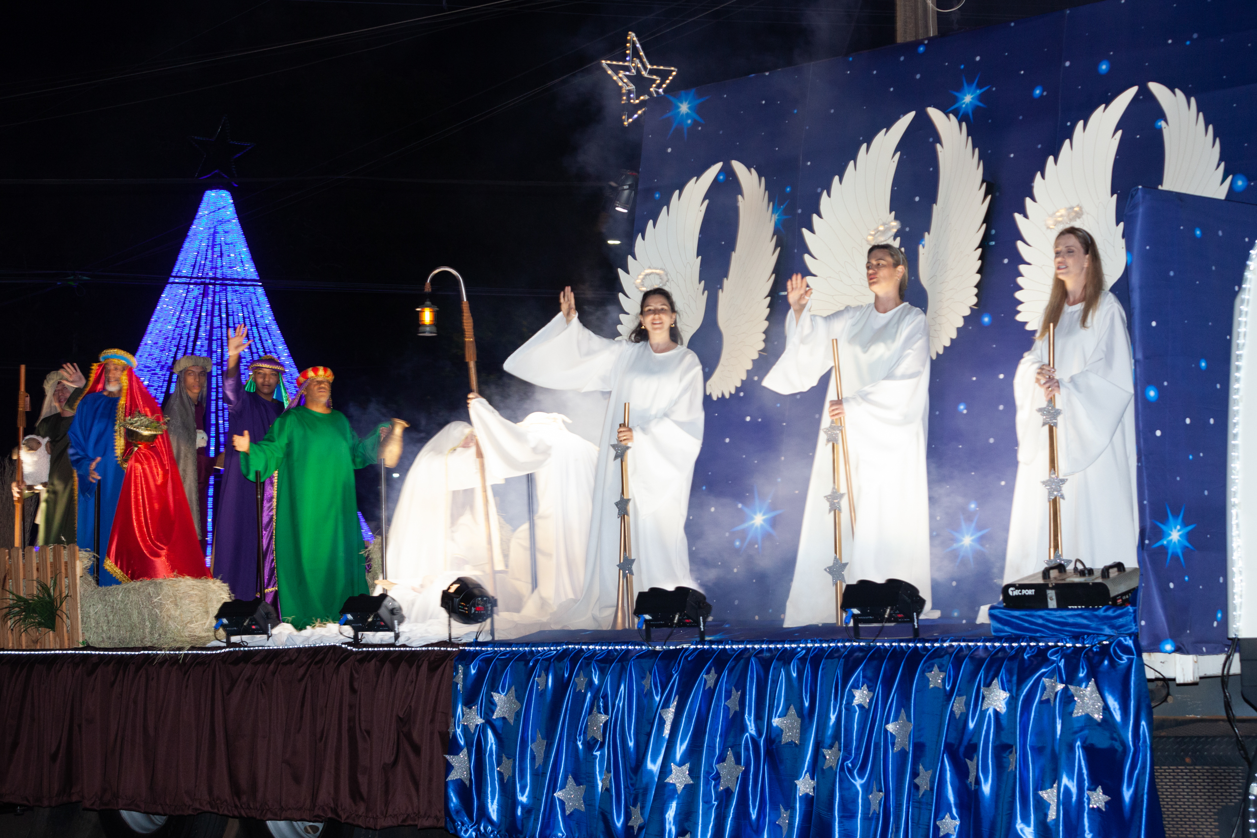 Ao longo do fim de semana, o público acompanhou apresentações do Auto de Natal, encenado por grupos de música e jovens da paróquia, em um palco montado na rua Santa Catarina, ao lado da Igreja Matriz São José. As apresentações, realizadas no sábado (20) e no domingo (21), combinaram música, narração e representação para contar a história do nascimento de Jesus. Segundo o pároco, padre Romão, cerca de 30 pessoas estiveram diretamente envolvidas na encenação.