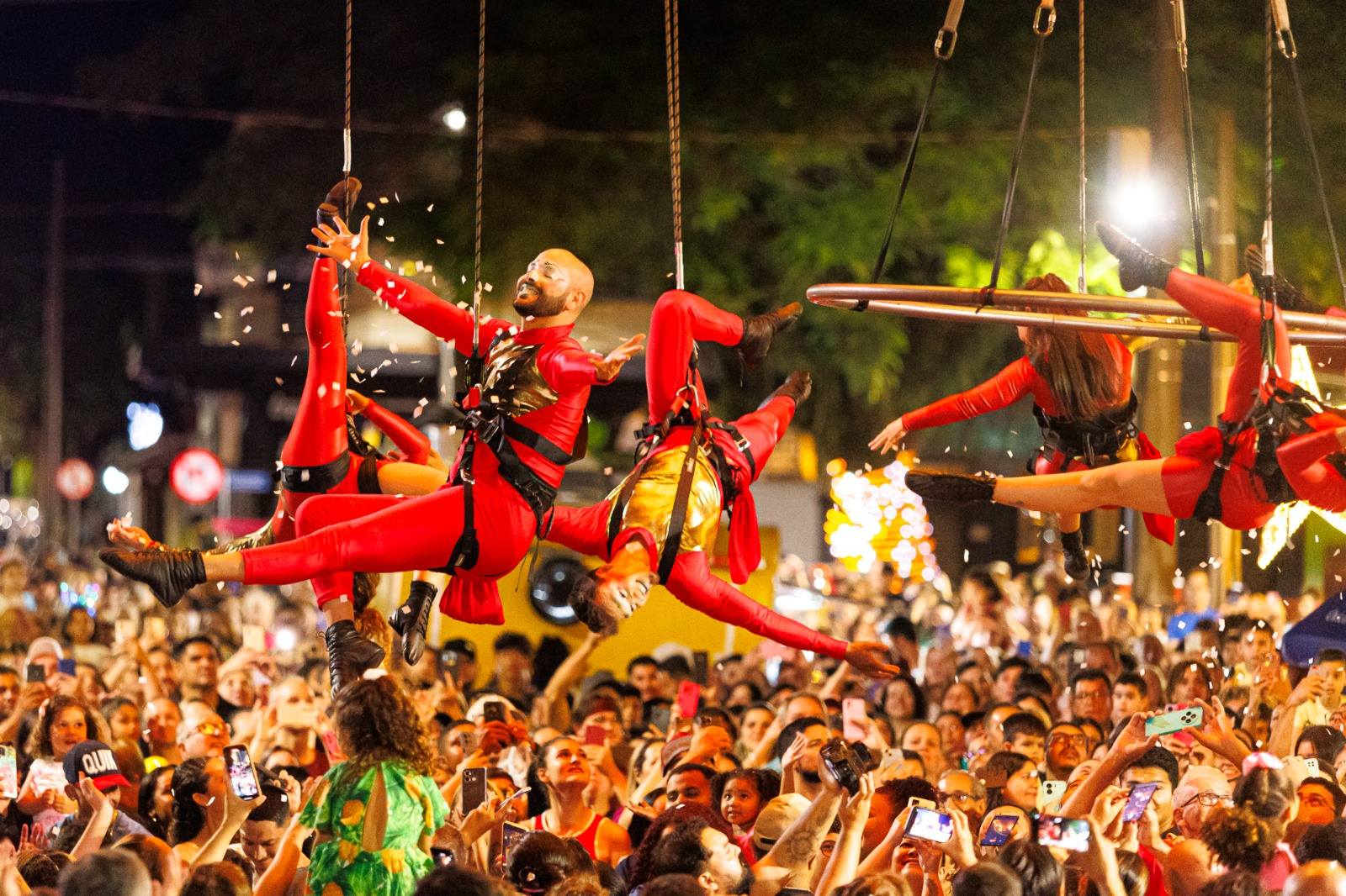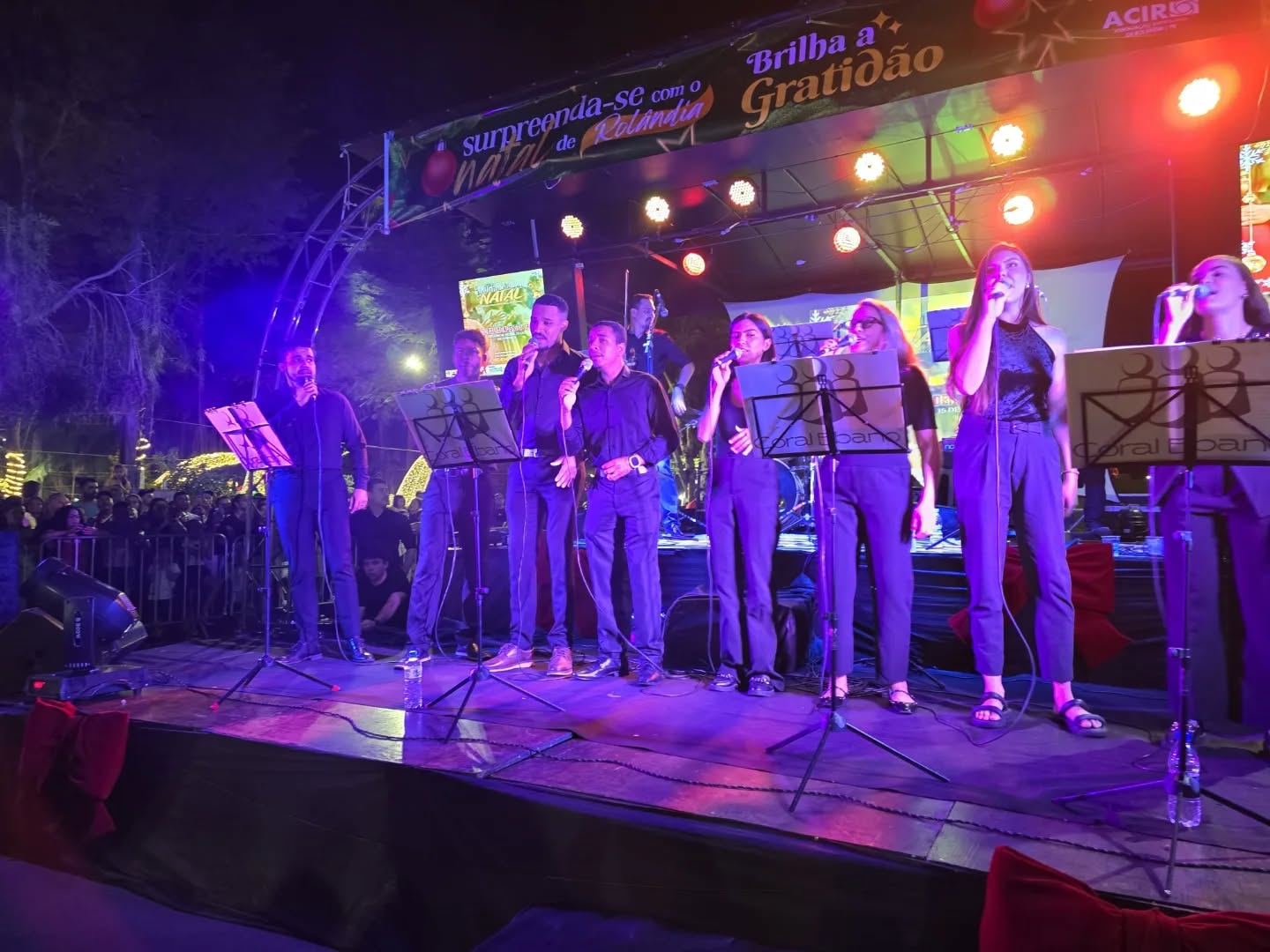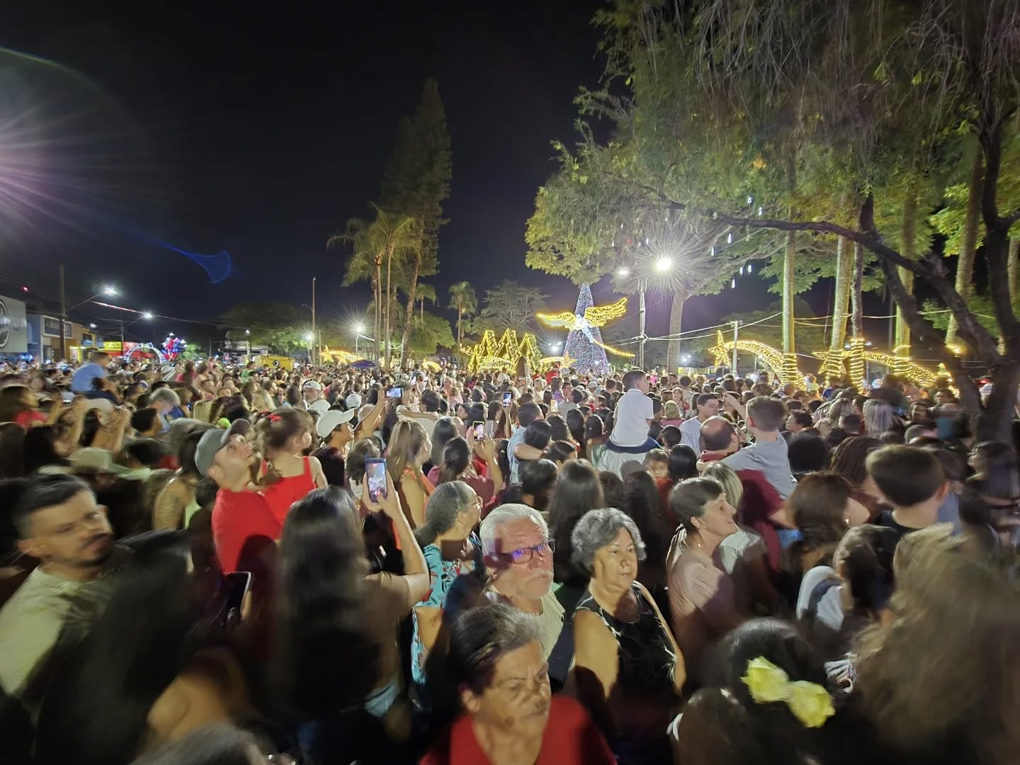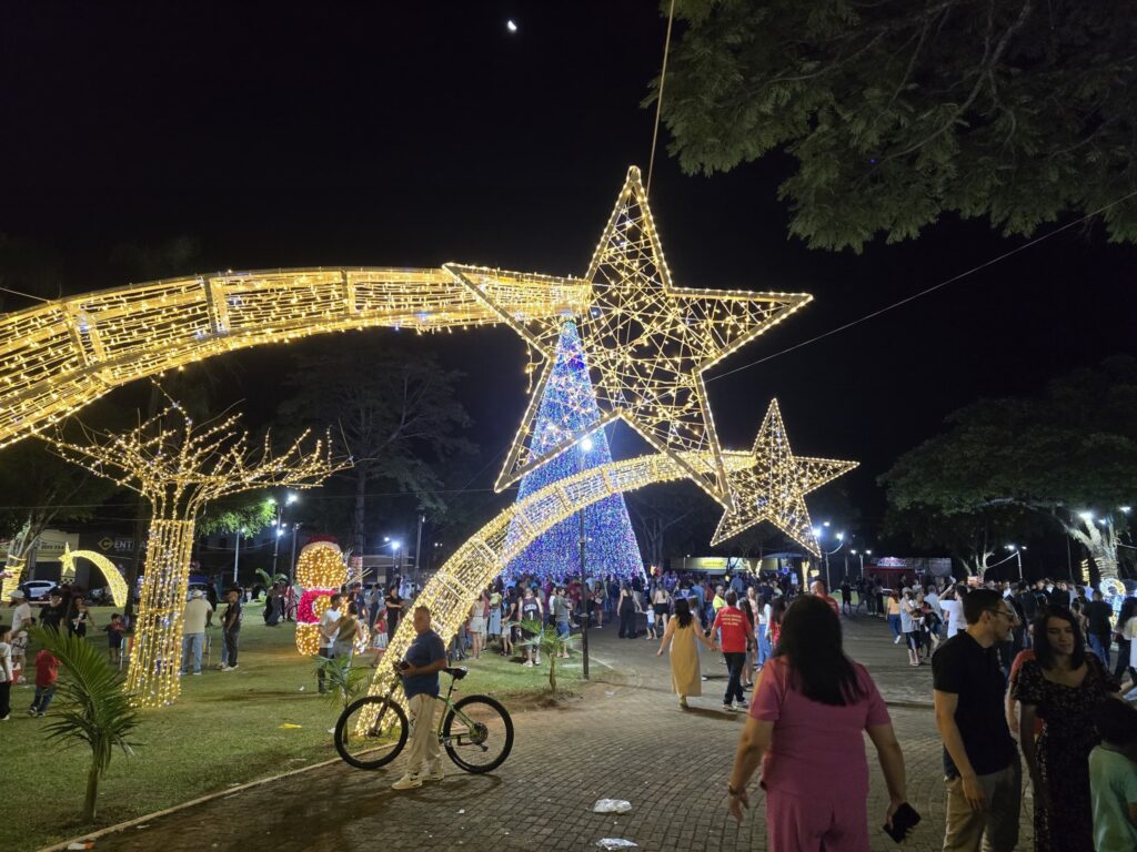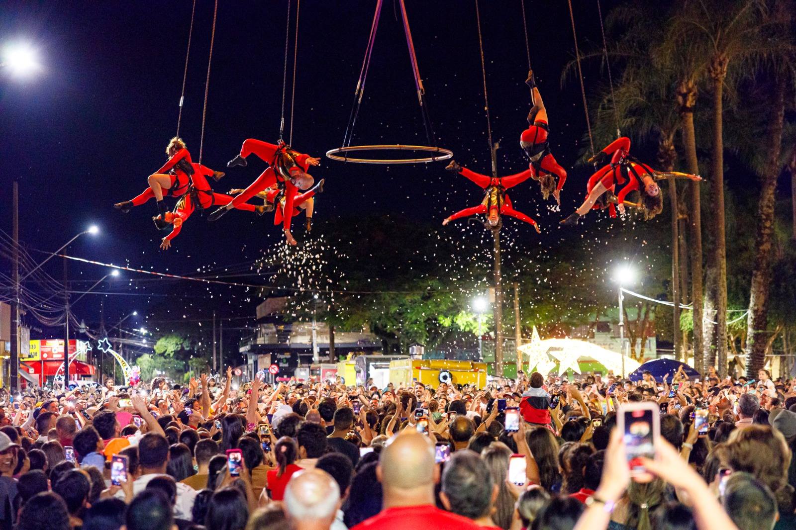 Na noite da quinta-feira (27), o público presente à praça Castelo Branco, em Rolândia, se emocionou e se encantou com a abertura oficial do Natal 2025 ‘Brilha a Gratidão’. O evento teve várias atrações e apresentações, com destaque para o balé aéreo, a dezenas de metros de altura, com os artistas suspensos por um grande guindaste.