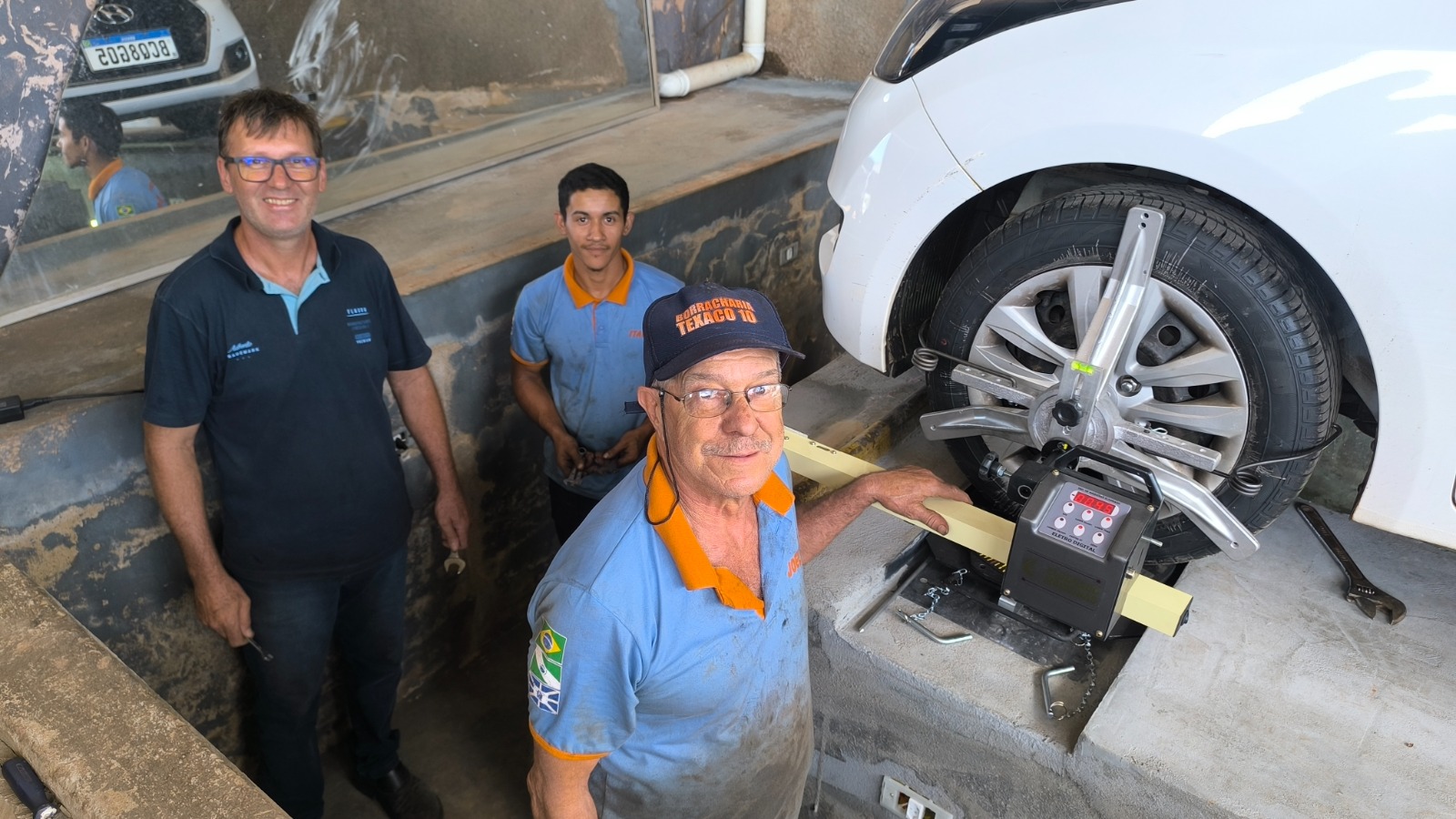 Além da estrutura, a Texaco 10 ampliou significativamente o leque de serviços. O espaço, que já realizava troca de pneus e balanceamento, agora oferece alinhamento computadorizado com equipamento novo e de alta precisão, atendendo carros, caminhonetes e vans. No alinhamento, o responsável é Rogério Henrique Kaus, irmão de Eduardo.