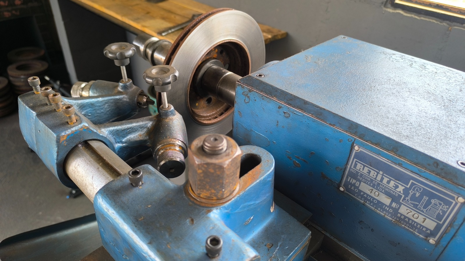 Outro serviço implantado na Borracharia Texaco 10, de Rolândia, é a retífica de disco de freio e campana, serviço voltado principalmente para oficinas mecânicas da região.