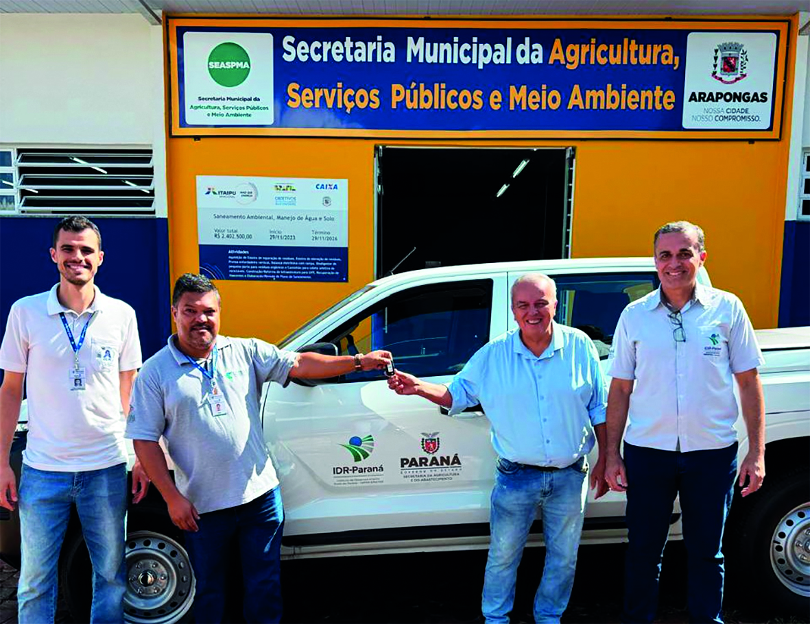 Ele também destaca a entrega de um veículo oriundo de investimentos do sistema Seagri, em parceria com a Sanepar, através do Programa Água Segura. Isso resultou no repasse de uma Mitsubishi Triton 4×4 para o IDR-Paraná de Arapongas. O programa foca na gestão integrada de microbacias e na proteção de mananciais, garantindo a produção de alimentos seguros e a preservação hídrica para as populações urbanas e rurais do Paraná. Em Arapongas, há duas microbacias escolhidas para serem trabalhadas pelo Água Segura. São as microbacias do Lageado e do Apertados, onde já foram realizados os levantamentos iniciais.
