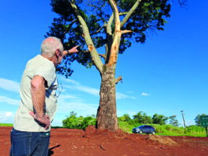 Árvores foram arrancadas pelo forte vento do temporal que passou pela localidade na tarde desta terça-feira; granizo também causou estragos na plantação