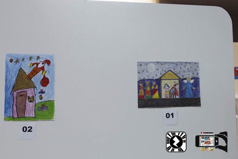Todo ano, a APAE promove um concurso de cartões de Natal, em que os alunos fazem desenhos, que são selecionados e concorrem com