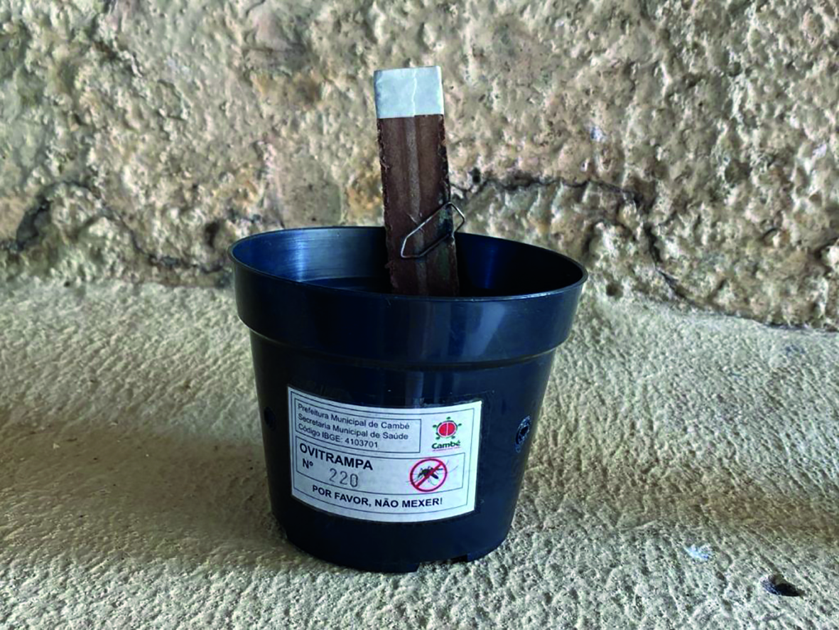 As armadilhas são instaladas a uma distância de 300 metros uma da outra – há 327 ovitrampas em Cambé. O monitoramento é semanal e realizado por dois agentes de combate às endemias (ACE). Esses profissionais visitam os locais onde as armadilhas estão instaladas, efetuam a troca da palheta e orientam o responsável pelo imóvel.