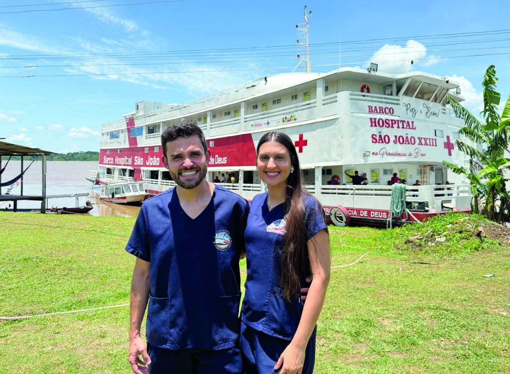 Os dentistas de Rolândia, Guilherme Ferreira e Larissa Ferreira, que são casados, ‘pularam’ de seu consultório na Av. Romário Martins diretamente para o Barco Hospital São João XXIII, no rio Amazonas. Os dois profissionais são voluntários na expedição que leva atendimento para as comunidades ribeirinhas e para a população indígena daquela região, que não têm o acesso aos serviços de saúde como nos outros estados do Brasil.