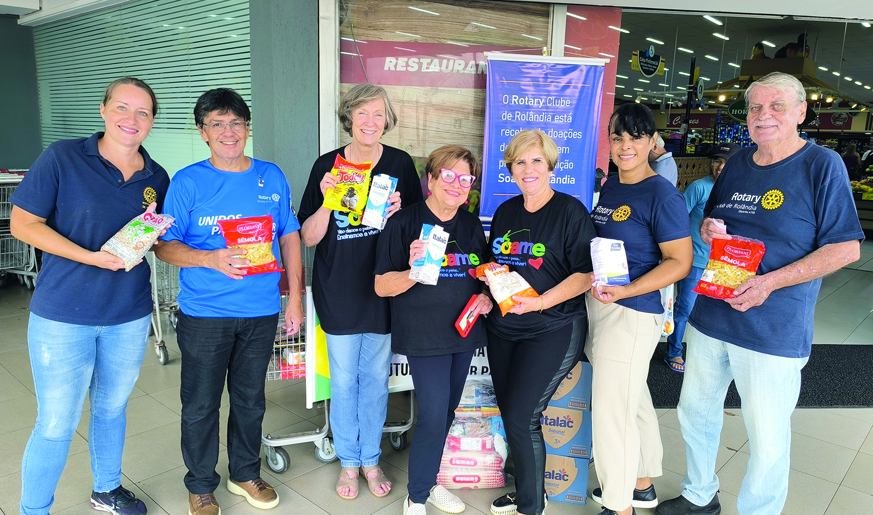 “A solidariedade do rolandense fez a diferença”, resumiu José Diniz, presidente do Rotary Rolândia. A ação de arrecadação foi feita no supermercado Boa Compra da avenida Castro Alves – começou às 9 e seguiu até as 17 horas com rotarianos e voluntários da Soame. Entre os produtos arrecadados estão o leite, achocolatado, arroz, feijão, ovos, macarrão e outros itens essenciais. “Queremos agradecer ao Boa Compra pela parceria e disposição em sempre ajudar em nossas campanhas”, pontuou Diniz.
