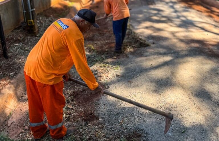 A pista de caminhada do local está passando por micro revestimento asfáltico e recebe trabalhos de urbanização e paisagismo A Secretaria Municipal de Obras, Transportes